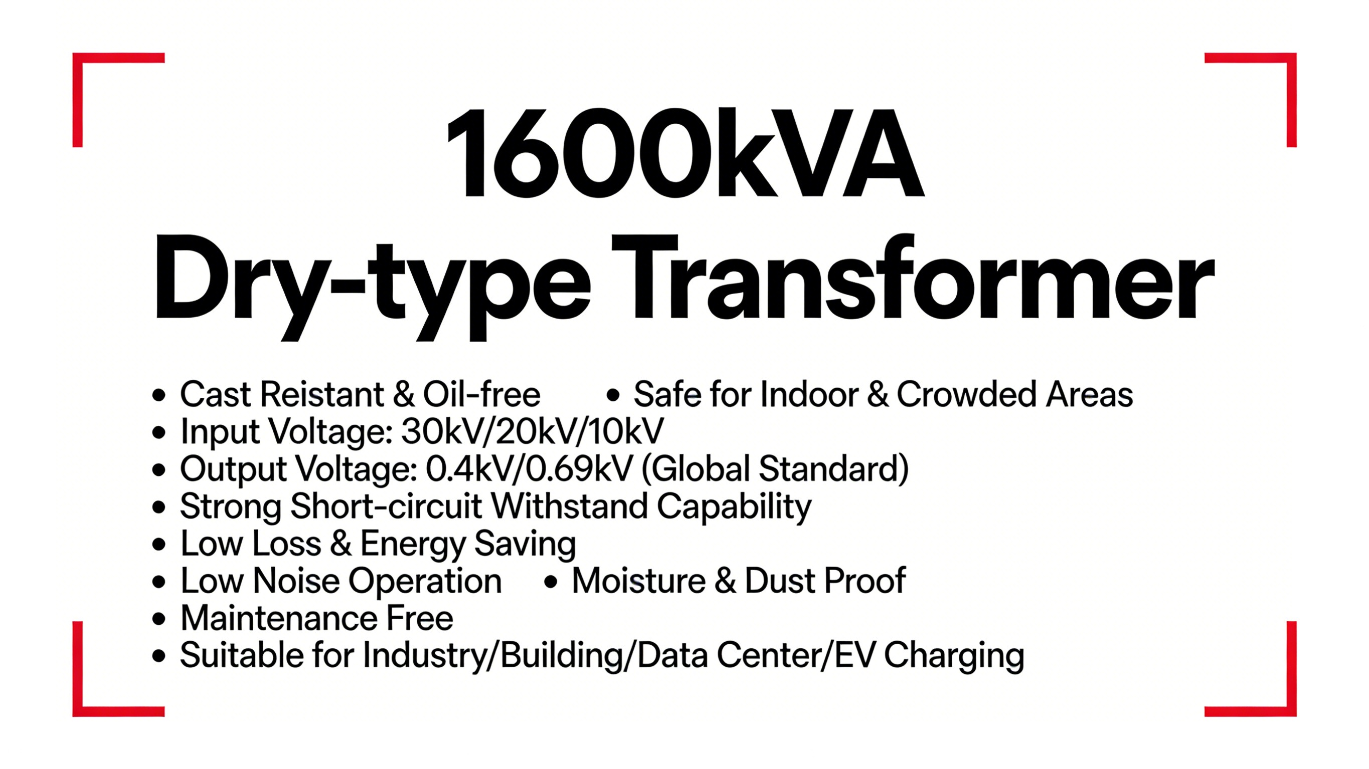 • 1600kva Dry Transformer 1500kva Three Phase Transformer 11KV 30KV 38.5KV for Industry Building Data Center with UL CE ROHS